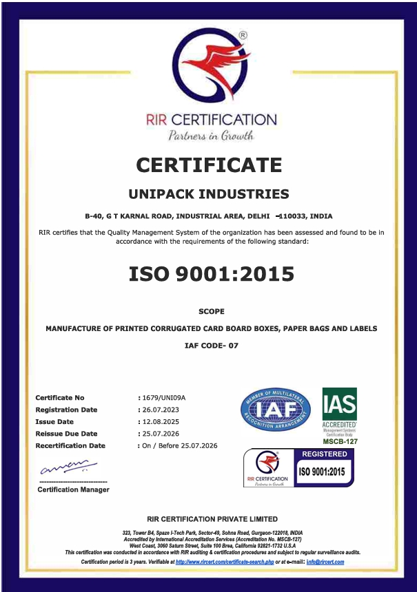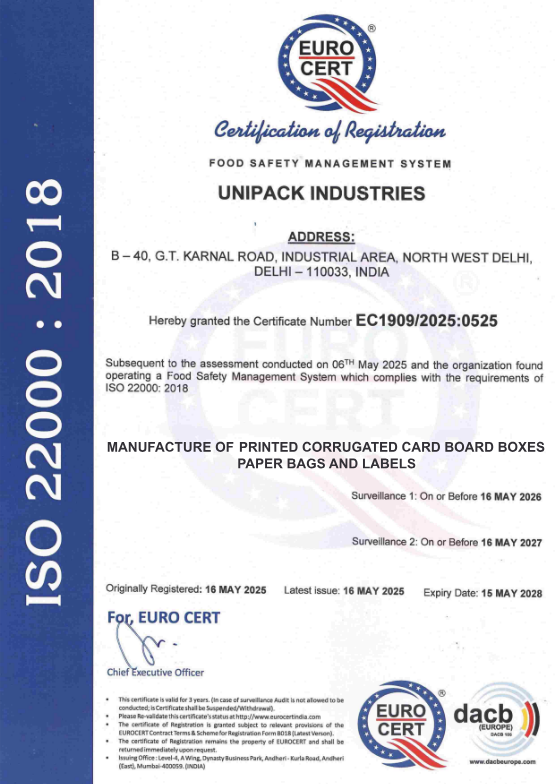 We are also a SEDEX Certified company maintaining highest standards. We have been maintaining high standards on: Labour Health and Safety (plus Environment 2-Pillar) Environment 4-pillar Business Ethics ISO Certification GMP Certification FSC certificate